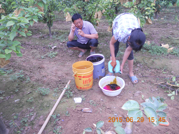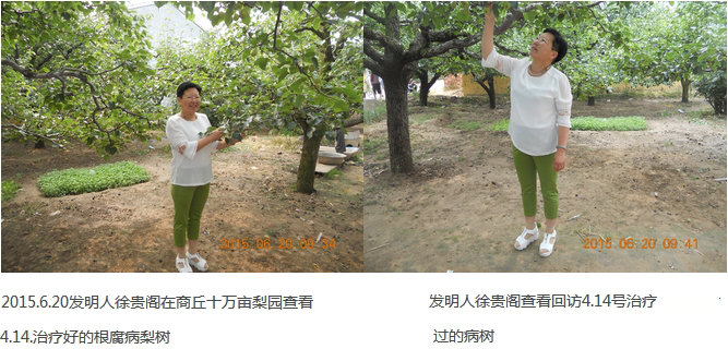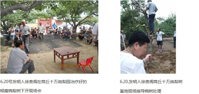 2015.6.20.發(fā)明人徐貴閣現(xiàn)場(chǎng)指導(dǎo)梨樹根腐病 6.21.商丘現(xiàn)場(chǎng)指導(dǎo)方法