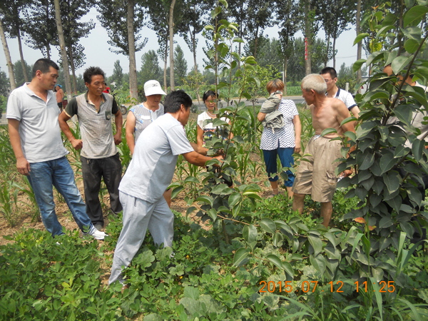 河南滑縣龍?zhí)┥锟萍加邢薰鹃L(zhǎng)垣晚秋黃梨示范基地 2015.7.12.長(zhǎng)垣徐氏團(tuán)隊(duì)現(xiàn)場(chǎng)考察