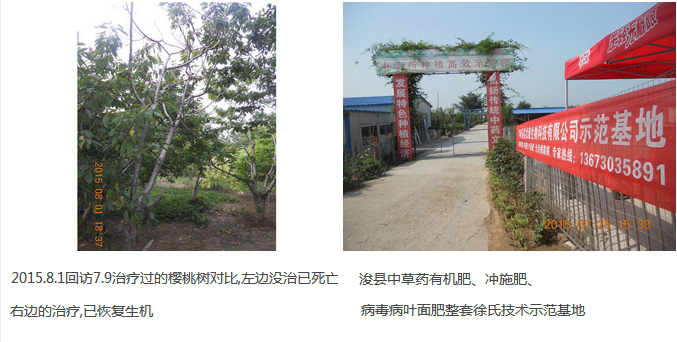 2015.8.1.號(hào)發(fā)明人徐貴閣女士回訪7.9.號(hào)治對(duì)比效果,本照片中右邊的那棵過,長(zhǎng)勢(shì)很好;左邊的那棵沒有,已經(jīng)枯死