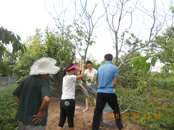2015.8.1.發(fā)明家徐貴閣女士回訪7.9過的櫻桃樹.根瘤菌病.病樹恢復情況很好!