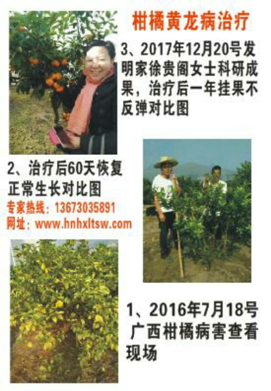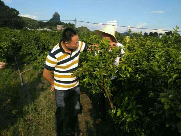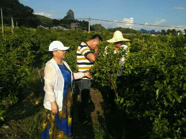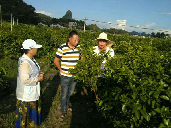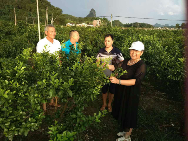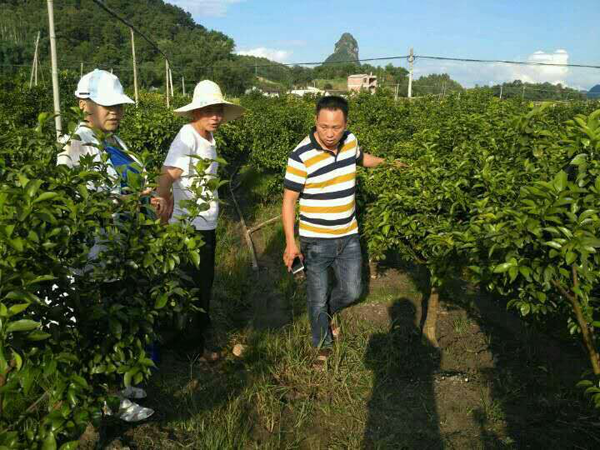 2017.7.13.廣西柑橘樹黃龍病治療后恢復(fù)正常生長,地方領(lǐng)導(dǎo)組織果農(nóng)現(xiàn)場觀摩